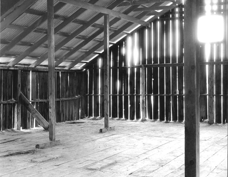 Inside a barn, Two Hawks Ranch, Colorado. TMAX 400, custom print, 1999.